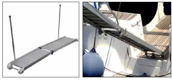 The Aluminum Gangway with Steps is a model that stands out with its folding design and 13 kg weight, featuring dimensions of width: 40 cm and length: 200 cm.