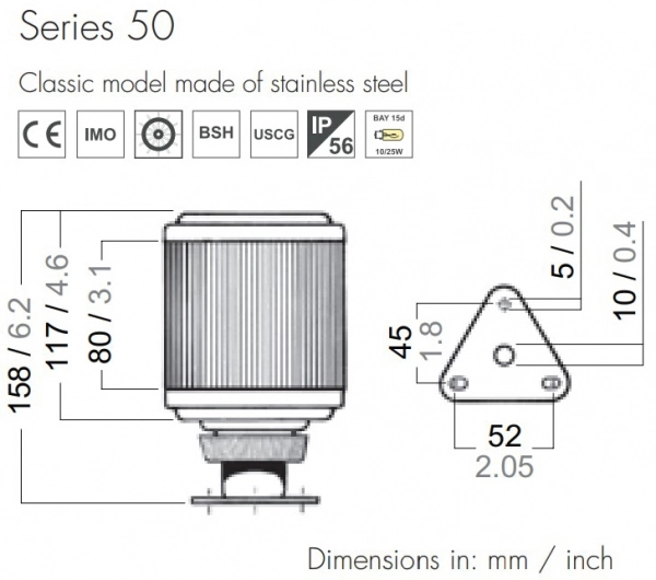 Seawater resistant stainless steel housing. Minimum 2 nm visibility. IP56 waterproof and anti-magnetic.