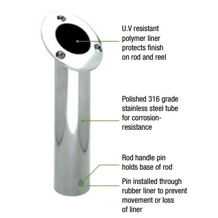 Attwood kamış yuvası. Paslanmaz çelik.