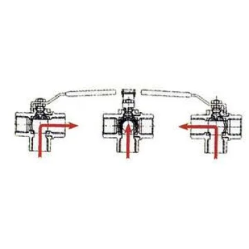 Ball valve, 3-way, chrome on yellow. "L" flow. Ball valve, 3-way. Chromed over yellow. "L" flow.