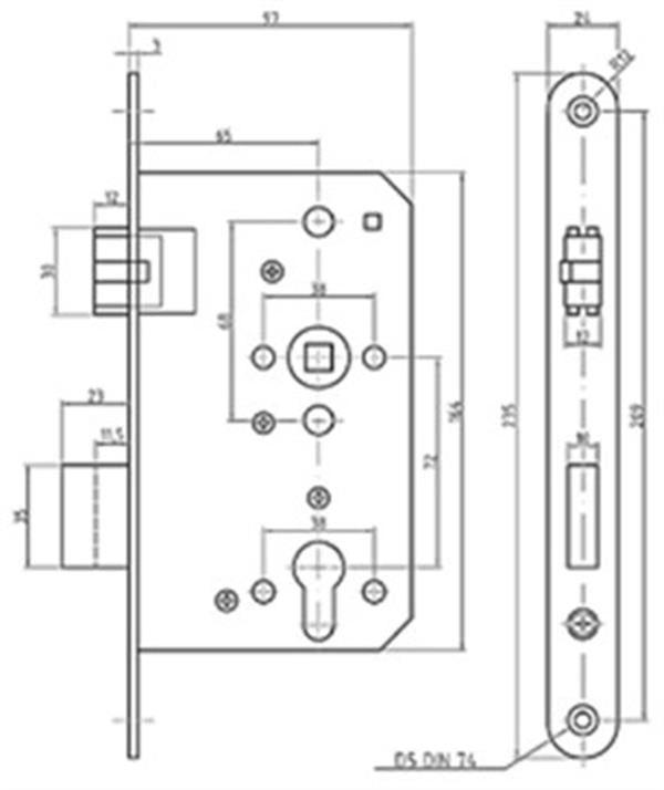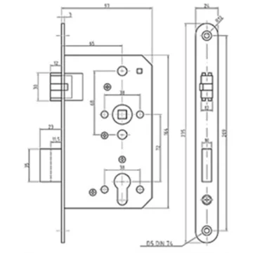 Sarı veya paslanmaz çelik gövde ve alın, silindirli ve wc tipi kilit seçeneklerine sahip, dili 3 parçalı olan gömme kilit. Kol merkezi 55 mm. Alın genişliği 25 mm. Kol merkezi 65 mm veya 75 mm olan modeller istenildiği takdirde sipariş ile temin edilebilir.