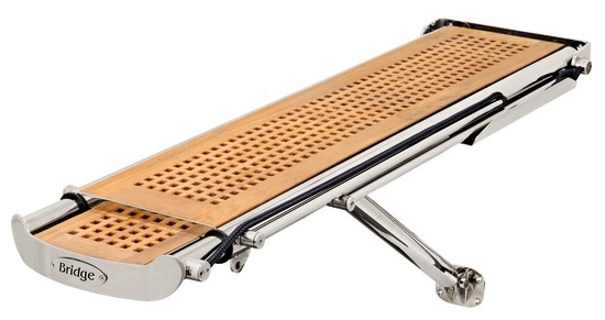 Polisajlı AISI 316 paslanmaz çelik gövde ve gerçek Burma kalitesinde tikten imal edilmiştir. Pasarellanın bir tarafında otomatik katlanabilir tutamak mevcuttur. Tak-çalıştır basitliğinde elektronik kontrol paneli ve kablolama sistemine sahiptir. Optimum kaldırma pozisyonu için pistonunun mesnet noktası değiştirilebilir. Pasarella, Elektrovalfli hidrolik kontrol ünitesi, AISI 316 paslanmaz çelik bağlantılı yüksek basınç hidrolik hortumları, elektronik kontrol ünitesi, kumanda paneli, uzaktan kumanda, pulpit ve kıç plaka ile birlikte sunulur.