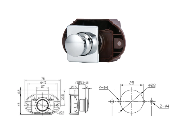 Dolap Kulbu Basmali Kare Krom Kapli