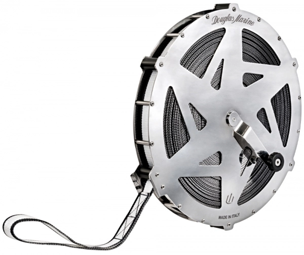 AISI 316 Paslanmaz çelik makara, 60 metre yüksek dirençli yassı halat. Kıç demiri halatı, palamar halatı, çekme halatı, cankurtaran halatı ve genel olarak kıçta acil durum halatı olarak kullanılabilir.