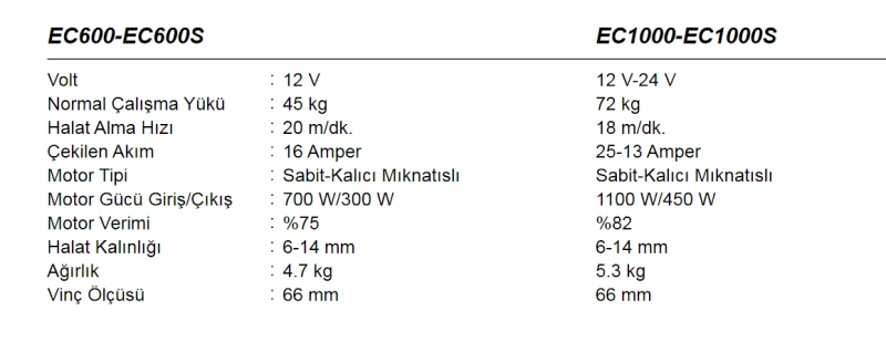 The EC600S model is an electric winch that operates on 12V DC and features a chrome-plated body.