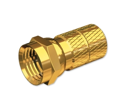 F konnektör, vidalı tip, altın kaplamalı sarı.