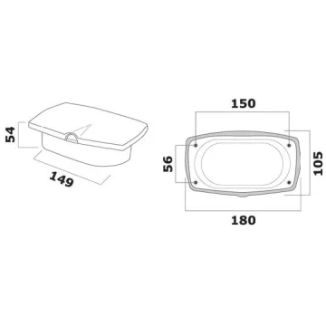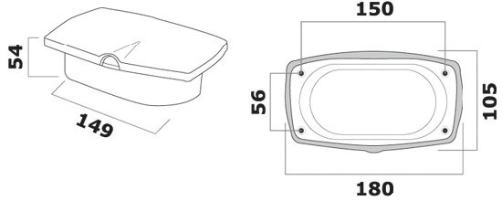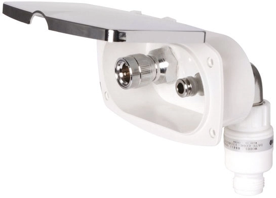 Recessed Water Inlet-Outlet There is a pressure reducing connection that reduces the water inlet pressure to 3 Bars and a connector from the system on the boat to the faucet. External dimensions 180x106 mm, mounting size 148x74x40 mm.