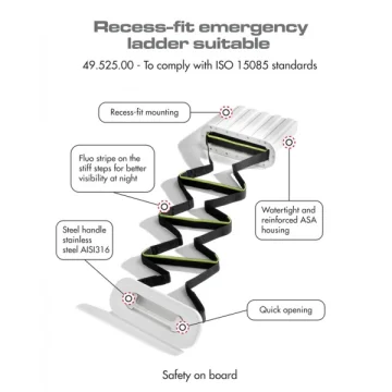 ISO 15085 ve ABYC H-41 standartlarına uygun gömme acil durum merdiveni.