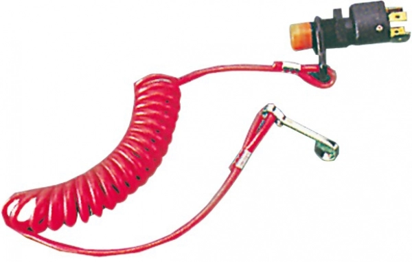 Akım kesen güvenlik anahtarı. Geçmeli klips sistemi ile donatılmıştır. Üniversal. Manuel veya sürücünün tekneden düşmesi halinde otomatik aktive olur. IP65