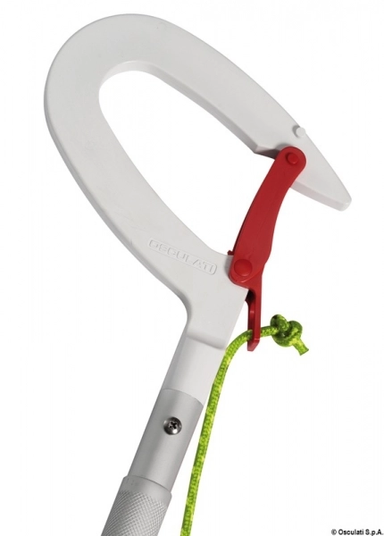 Bu tekne kancası, kullanıcının tek bir hareketle şamandıranın gözünü kancaya ve bağlama hattına almasını sağlar. Kanca kısmı özel yüksek mukavemetli bir teknopolimerden yapılmıştır. Teleskopik (105/245 cm) kakıç eloksallı alüminyumdur.