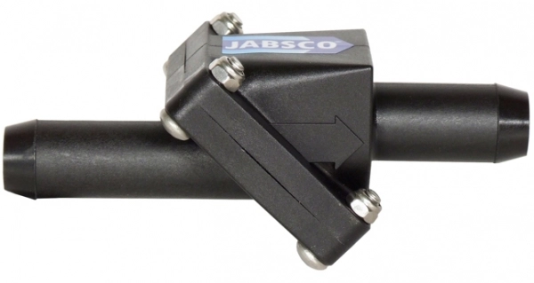 Jabsco Çek-Valf Geri dönüşsüz valfler, pompanın emme hortumuna takılarak emişe yardımcı olur ve suyun sintinelere geri akmasını önler. Emme hortumuna kolayca takılır. Nitril kauçuk valfli, sağlam plastik yapı. Uygun hortum açısı için ayarlanabilir port konfigürasyonu. 108 mm uzunluk, 55 mm genişlik, 50 mm yükseklik.