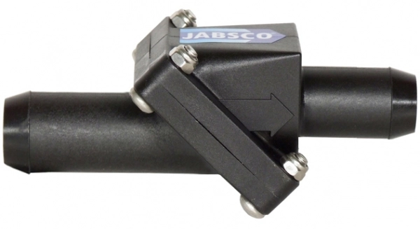 Jabsco Çek-Valf Geri dönüşsüz valfler, pompanın emme hortumuna takılarak emişe yardımcı olur ve suyun sintinelere geri akmasını önler. Emme hortumuna kolayca takılır. Nitril kauçuk valfli, sağlam plastik yapı. Uygun hortum açısı için ayarlanabilir port konfigürasyonu. 108 mm uzunluk, 55 mm genişlik, 50 mm yükseklik.