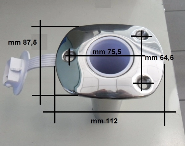 Kamış yuvası, paslanmaz çelik. Kauçuk koruyucu kapaklı. Ø 42 mm.
