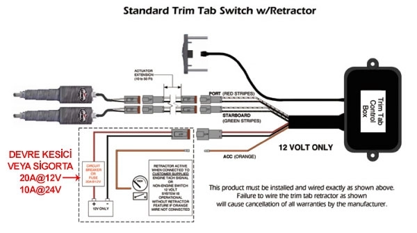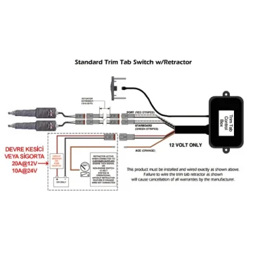 Lenco flap kontrol paneli. Trim göstergeli. Gece optimum görüş için panel arkadan aydınlatmalıdır. Güç kapatıldığında flapları otomatik olarak sıfır pozisyonuna döndürür. 12/24V.
