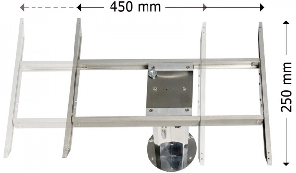Eloksallı alüminyumdan üretilmiştir. Çift yönlü. Tablanın iki eksen boyunca kaydırılmasına izin verir: uzunlamasına 450 mm ve enine 250 mm. Dış boyut 680x560 mm. Ayak dahil değildir.