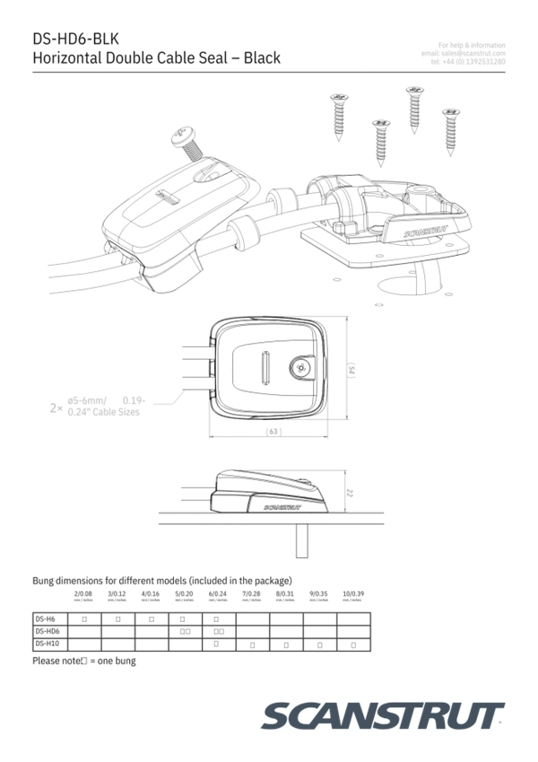 SCANSTRUT DS-HD6-BLK ÇİFTLİ KABLO ÇIKIŞI, SİYAH, 6-10MM
