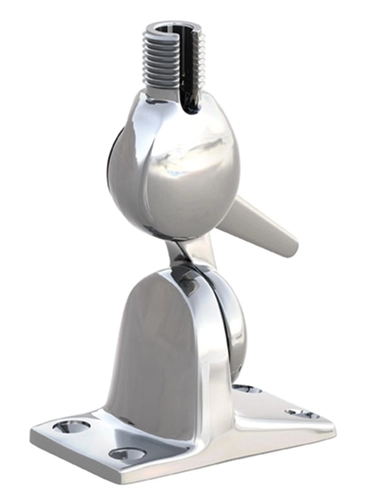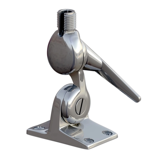 Shakespeare 5187 anten montaj braketi. Paslanmaz çelik. Yalın ve akıcı bir görünüme sahiptir. Beş derecelik diş aralıkları ile diğer modellere nazaran daha ince ayar yapmaya imkan tanır. Kablo geçiş yuvasına sahiptir. Standart Ø 1”, 14 pasoludur. Taban 76x38mm.