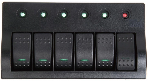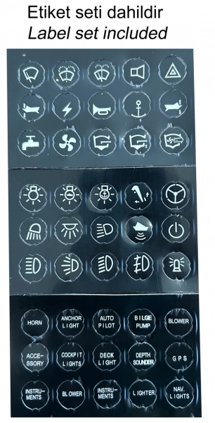 Siyah polikarbonat çerçeveli. Ledli anahtarlar ve resetlenebilir otomatik sigortalarla donatılmıştır.