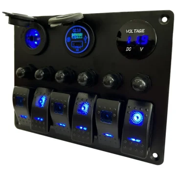 Siyah alüminyum çerçeveli. On-Off ledli anahtarlar ve resetlenebilir otomatik sigortalarla donatılmıştır. Etiket seti dahildir. DC 12V.