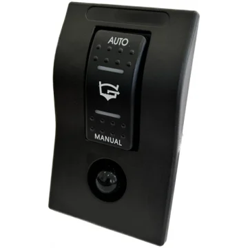 Siyah polikarbonat çerçeveli. 3 pozisyonlu; Yaylı Manuel/Kapalı/Otomatik. 10A resetlenebilir otomatik sigortalı.