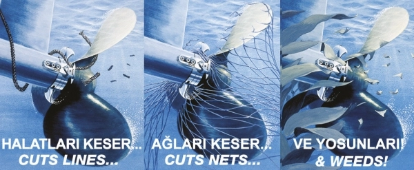 • Dondurucu ve sert denizlerde pervaneye takılan halatları kesmek için yapılan tehlikeli dalışları ortadan kaldırır