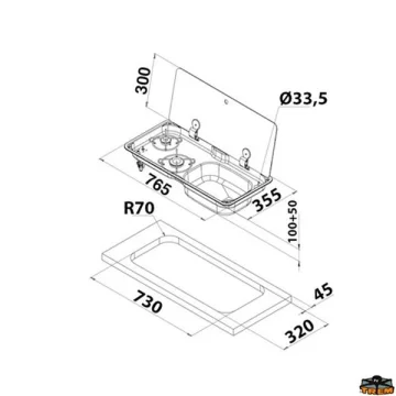 dimensions / Dimensions: 765 x 355 x 100+50 mm