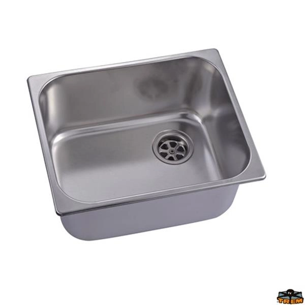 Semi-gloss stainless steel rectangular sink. Water drain not included. Depth 150mm.