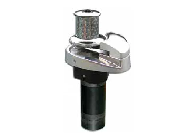 Vertical windlass with aluminum body, 6 mm rope capacity.