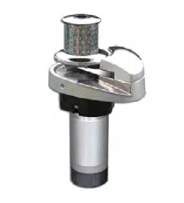 It is a vertical windlass model with an H-shaped light, aluminum body, and a 12V power supply.