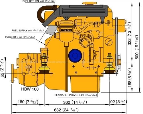 Vetus Diesel deniz motoru, 13 HP (9.5 kW). Vetus Diesel M2.13 deniz motoru