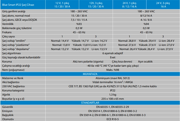 Blue Smart IP22 Charger Şarj Cihazı, tümleşik bluetooth özelliğine sahip yeni profesyonel akü şarj cihazıdır. Blue Smart IP22 Charger Şarj Cihazı, atölyenizdeki ve (klasik) otomobiller, motosikletler, botlar ve karavanlar gibi motorlu araçlardaki cihazlarınızda kullanılabilir.