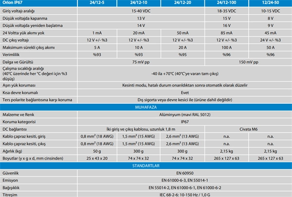 İzolesiz, reçine kaplı Orion IP67 24/12-100