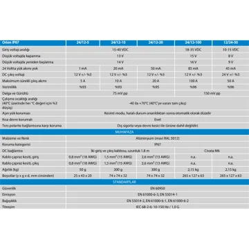 İzolesiz, reçine kaplı Orion IP67 24/12-5