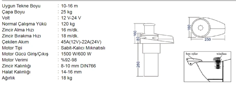 The VS1500 Vertical Windlass is a mooring/anchor handling equipment that stands out with its chrome-plated body and 24V DC power system.