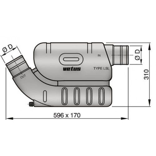 60mm (2 3/8”) egzoz hortumlarına uygulanabilir. Yelkenliler gibi düz ve uzun egzoz sistemi uygulamaları için dizayn edilmişlerdir. Sabit giriş, çıkışa sahiptir. Boşaltma tapası mevcut olup, toplam kapasitesi 16 litredir. Maksimum sürekli çalışma sıcaklığı 70 ºC’dir.