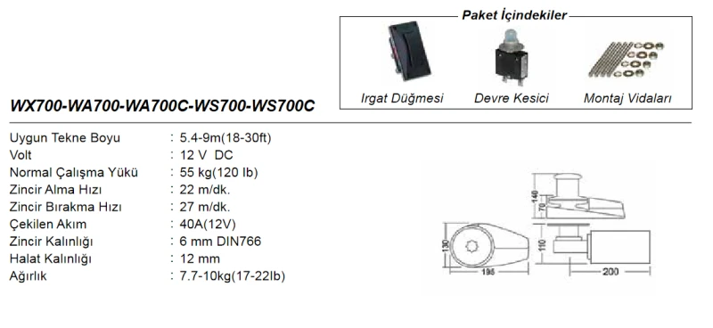 The WN700 Vertical Windlass is a 12-volt DC electric windlass designed for mooring and anchoring operations on boats and yachts. The product stands out with its durable 6 mm nylon body structure.