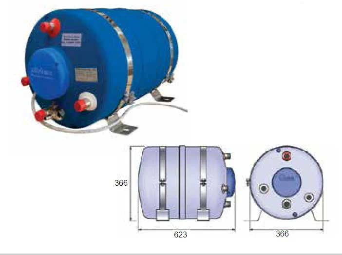 40 litre kapasiteli, 220V çalışan, AISI 316 paslanmaz çelik tanklı marin boiler. Motor devir daim suyu veya elektrikle ısıtma yapabilir.