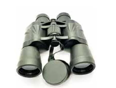 Kauçuk kaplamalı, 7x büyütme ve 50 mm lens çapına sahip, askılıklı taşıma çantalı dürbün.