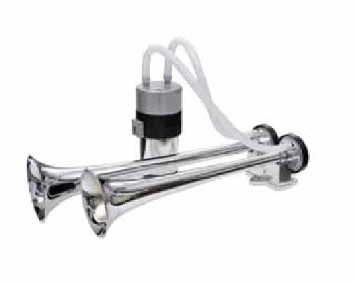 Bu ürün, tekne ve yatlar için tasarlanmış, 12 volt ile çalışan bir havalı korna çiftidir. Krom kaplama gövdeye sahip olup, boyutu 380 mm'dir.