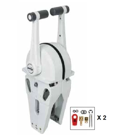 Beyaz renkli çiftli kumanda kolu, tekne ve yat dümen-kumanda sistemleri için tasarlanmıştır.