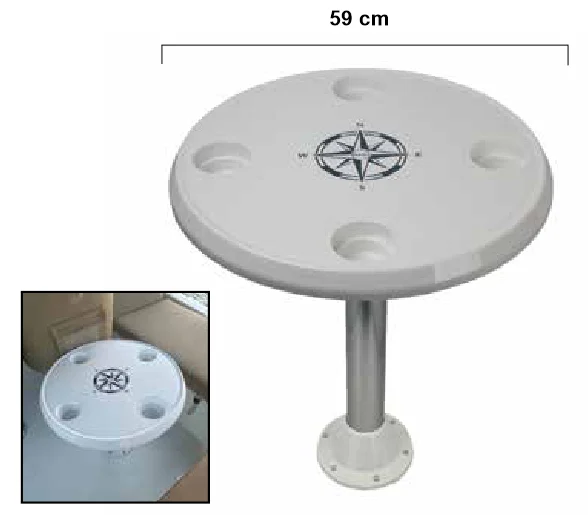 Yuvarlak tasarıma sahip bu plastik masa, Ø 59 cm çapıyla pratik ve kompakt bir kullanım sunar. Hava koşullarına karşı dayanıklı malzemeden üretilmiştir.