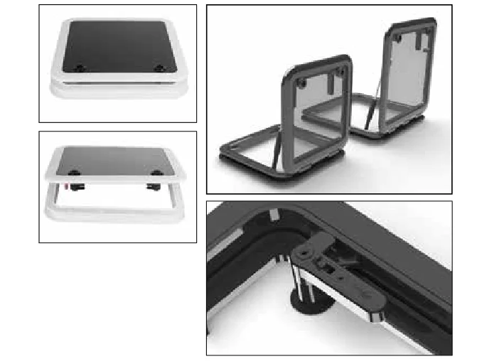 Plastik Hatch Sealux Siyah 50x50, siyah renkli gövdesi ve 435 mm x 435 mm montaj ölçüsü ile sunulan bir plastik hatch modelidir.