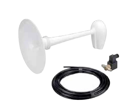 30 cm çaplı, beyaz gövdeli, elektrik kompresörlü ve COLREG 1972 IMO IV’e göre ses ayarı yapılmış, M3 kompresörle kullanılan kompresörlü korna.