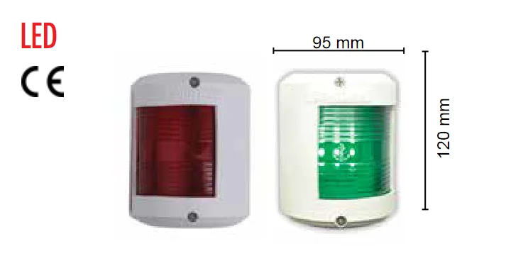Seyir Fenerleri SL 25 LED, 12V-24V besleme ile çalışan ve 12-25 metre tekneler için uygun bir modeldir; polikarbon gövde ve akrilik cam yapısıyla sunulur.