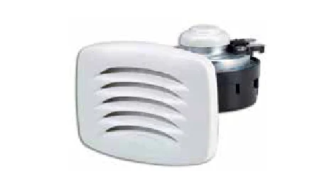 Beyaz renkte tasarlanmış gömme korna, güvenlik kategorisinde yer alan bir sesli uyarı ekipmanıdır.