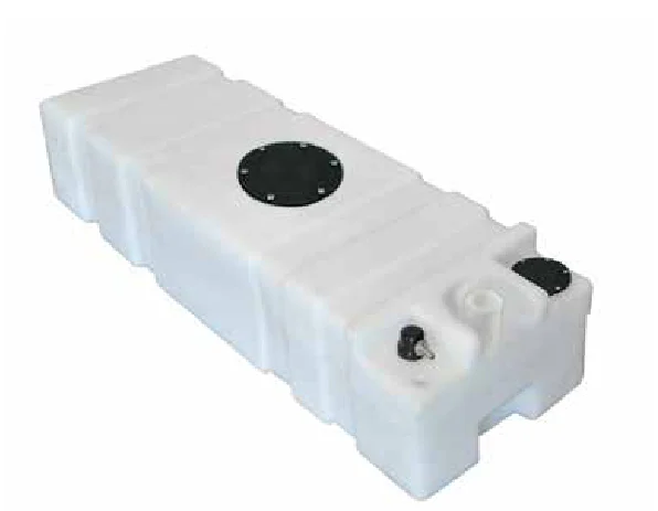 Su, yakıt ve pis su için kullanılabilen, 110x35x23 cm ölçülerinde, 80 lt su ve 72 lt yakıt hacmine sahip tank.