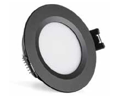 Siyah gövde, günışığı rengi, 6W güç ve Ø80 mm ölçüye sahip gömme LED tavan lambası.