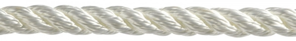 Beyaz. 3 kollu, örgülü polyester halat. Bağlama ve demir halatı olarak kullanılabilir. Batar.