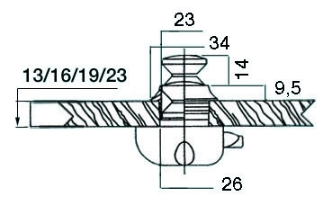 3836180 kilit için buton & halka. Delik Ø 26mm.