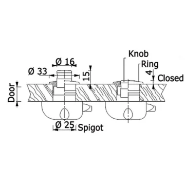 Basmalı butonlu yaylı kilit, kapılar ve kapaklar için. 3836180 kilit için buton & halka. Delik Ø 26mm.